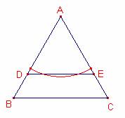 de longitud mínima que talla el triangle en dos polígons d’igual àrea, és un