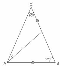 Es claro que el ángulo A es 80º; entonces el triángulo ABC