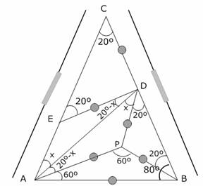 AED (ED=AP; m<DAP=m<ADE=20º-x)