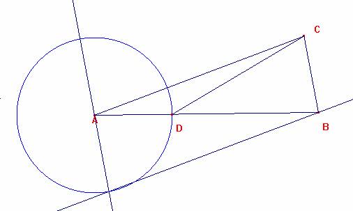 La construcción es a través de dos paralelas a AC por B y a CB por A y mediante una circunferencia de radio r =CB, se construye D.