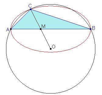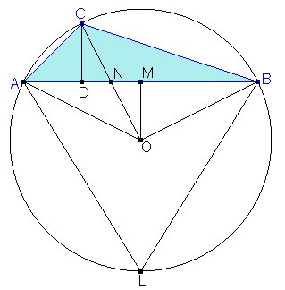 Si consideramos la figura, un triángulo ABC con AB fijo que cumpla la propiedad tendrá una altura CD igual a la distancia OM del circuncentro al lado AB.