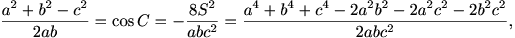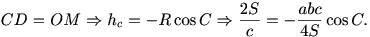 Sean, como es habitual, R, s y S el radio de la circunferencia circunscrita, el perímetro y el área del triángulo ABC. Entonces,