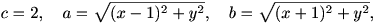 Entonces, De aquí obtenemos obteniendo la relación Recordemos que el lado AB es fijo, por lo que podemos considerar A=(-1,0), B=(1,0) y C=(x,y). Entonces tendremos: y puede verse sin dificultad que al sustituir estos valores en la relación anterior obtenemos la ecuación que corresponde a una elipse con eje mayor el segmento AB. Dos vértices de la elipse serían entonces los puntos A y B, y los otros dos son los baricentros de los triángulos equiláteros construidos sobre AB.