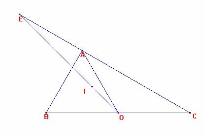 pasa por el incentro I, y el circuncentro O, que corta a la prolongación de