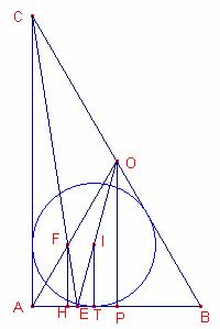 de la circunferencia circunscrita O a un triángulo rectángulo es el punto medio