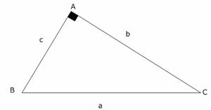 Sea un triángulo rectángulo en A, de hipotenusa a, catetos b y c, semiperímetro p y área S.