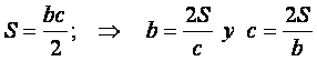 1. Calcular los catetos en función de la hipotenusa y el área.
