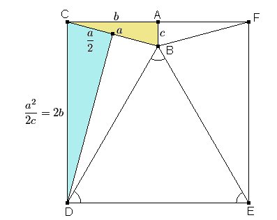 | 2. | Demostrar geométricamente que si los ángulos agudos son de 15º y 75º, el producto de los catetos es equivalente al cuadrado de la mitad de la hipotenusa. |