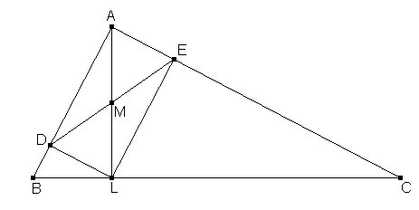 Refiriéndonos a la figura, por ser M el punto medio de la altura AL y del segmento DE tenemos la igualdad vectorial AD = AM + MD = ML + EM = EM + ML = EL, e igualmente DL = AE, por lo que ADLE es un paralelogramo, y por tanto un rectángulo. En el triángulo ADE tenemos los ángulos ÐADE = ÐADM = ÐMAD = ÐLAB = ÐC, y ÐAED = ÐB. |