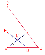 · Sea M el punto medio de la altura por A. Se traza por M una recta DE cuyo punto medio es M, y está limitada por los catetos. Se pide el valor de los ángulos en E y D en función de los del triángulo.