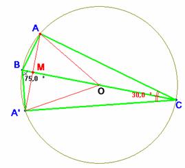C = 30º, el ángulo central es el doble, siendo por tanto equilátero el triángulo OAA’, de donde R=AA’=a/2.