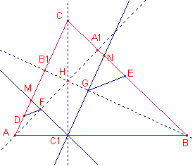 Problema 5.- Sean AA 1 , BB 1 CC 1 las alturas de un triángulo acutángulo. Demostrar que los pies de las perpendiculares trazadas por C 1 a los segmentos AC, BC, AA 1 y BB 1 están alineados.