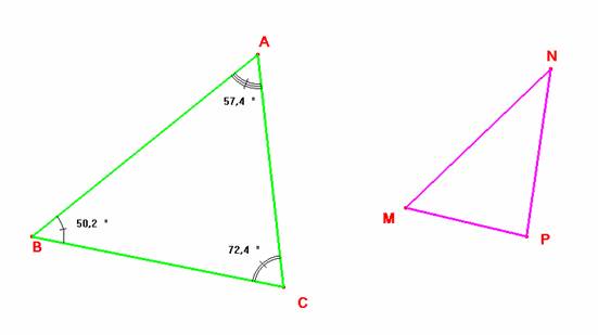 paralelas ninguna. Julius Petersen, con el número 377, también lo incluye en su obra Un enunciado más actual sería En un triángulo dado ABC, inscribir otro triángulo congruente a un triángulo dado MNP. Y como vimos varias soluciones del mismo, proponemos su resolución por un método diferente a los presentados, el método del problema contrario. En lugar de inscribir el triángulo dado MNP en el ABC, procedamos de modo contrario, es decir Circunscribir a un triángulo dado MNP un