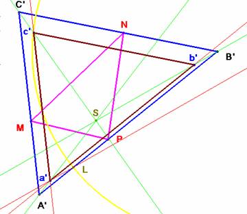 Hacemos esto mismo con el triángulo A’B’C’ obtenido a partir de ABC. La figura siguiente muestra el resultado: