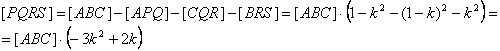 semejanza entre los triángulos CQR y ABC y, de nuevo, k vuelve a ser la razón de semejanza entre BRS y ABC. Por tanto,