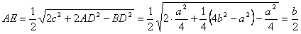 2º Método: Es claro que según la construcción en el problema, AD es la mediana del triángulo ABC que parte del vértice A. Es bien sabido que la mediana en función de los lados está dada por (teorema de Apolunio)