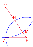 la hipotenusa en N. Análogamente con centro en A y radio AC, 12 cm se traza un arco que corta a la hipotenusa en M. Halla