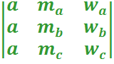 donde hama wa son la altura, la mediana y la bisectriz interior que parten del vértice A del triángulo ABC, respectivamente. Análogamente se definen los demás términos del determinante respecto de los otros vértices. Vicario, V. (2008) Comunicación personal