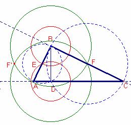 e) Siguen les interseccions d’ambdues circumferències F, F’