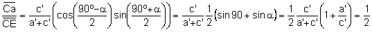 a) La bisectriz del ángulo B es perpendicular a CE, y la bisectriz del ángulo A es perpendicular a CF. Además, CE es bisecado por la bisectriz del ángulo B (en un punto a), y CF es bisecado por la bisectriz del ángulo A (en un punto b), y consecuentemente ab es paralela a AB e igual a ½ EF.