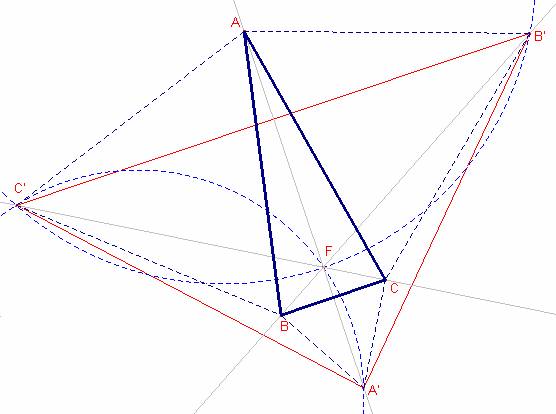 Construir un triángulo ABC del que conocemos los vértices A’ B’ C’ de los triángulos equiláteros BCA’, CAB’ , ABC’ hacia el exterior.