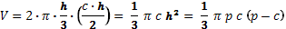 Detta h l’altezza relativa al lato c. Per il teorema di Guldino il volume del solido di rotazione attorno al alto c sarà dato da