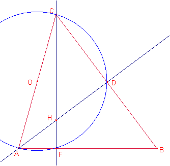 Notemos que los puntos D y F pertenecen a la circunferencia.
