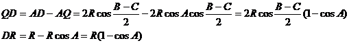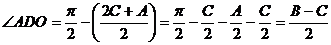 Consideremos el triángulo AOD, que, obviamente, es isósceles, por tener dos lados iguales al radio de la circunferencia circunscrita al triángulo ABC. Utilizando propiedades elementales relacionadas con los ángulos inscritos en una circunferencia, es fácil obtener que