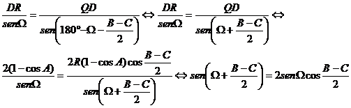 Finalmente, aplicando el teorema de los senos al triángulo QDR, y denotando
