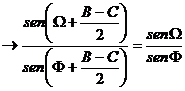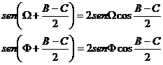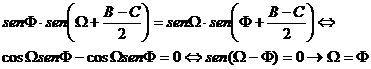 lo que nos lleva, después de simplificar los senos de sumas de ángulos a
