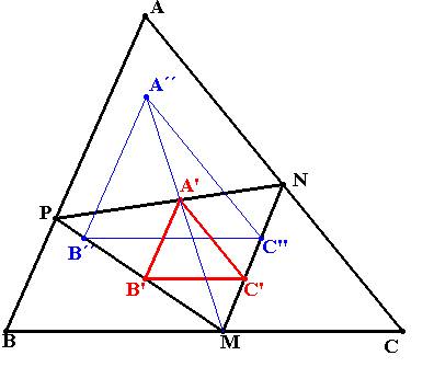 Sea MNP un triángulo inscrito en ABC, con M en BC, N en CA y P en AB.