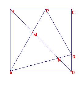 Sea ABCD un cuadrado. Por A se traza cualquier triángulo PAQ con P sobre BC, Q sobre CD y <PAQ=45º. Sean M y N los puntos de intersección de la diagonal BD con AP y AQ. Demostrar que 2(BM BM +ND ND)=PQ PQ.