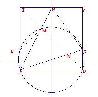 Es <AQD=Q, <ADQ=45º, <QND=135-Q=<ANM, <MAN=45º, <AMN=Q=AQD. Luego AMQD es un cuadrilátero concíclico.