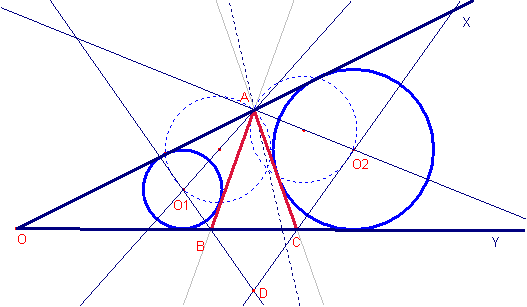 sobre OY, tal que cada uno de los lados iguales sea tangente a cada una de las circunferencias.