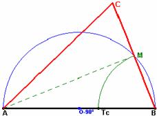 Por ser la altura AM perpendicular a su lado a, el punto M está en el arco capaz de 90º del lado c.Para completar el triángulo se obtiene el vértice C por una simetría del vértice B respecto al punto M.