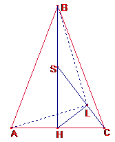 Se tiene un triángulo ABC, donde AB=BC. Si H y S son los puntos medios de AC y HB, respectivamente, y HL es perpendicular a SC en L, pruebe que es
