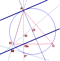 és paral·lela a la tangent per A a la circumferència circumscrita.