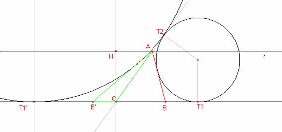 Dibuixat la circumferència de radi b i centre C que talla la recta r en A.