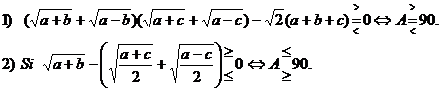 Sean a, b, c lados de un triángulo, tales que, a>max(b,c), y el ángulo A, es el correspondiente al lado a, probar que :