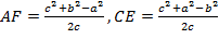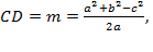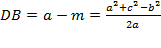 también es AD2=AB2-BD2, es decir, AD2=c2-(a-m)2=c2-a2+2am-m2.