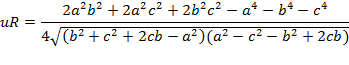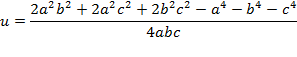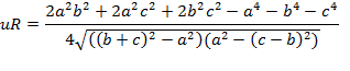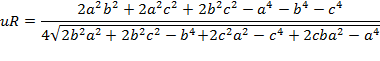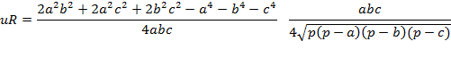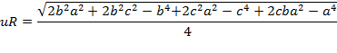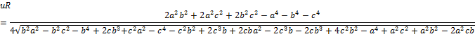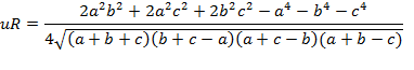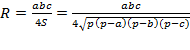 Por otra parte busquemos el valor de R, radio de la circunferencia circunscrita, en función de los lados a,b y c.