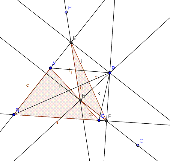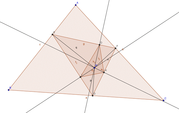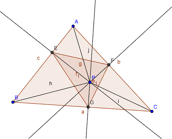 Sea G1 el triángulo que forman los pies de las perpendiculares trazadas desde P a los lados del triángulo G.