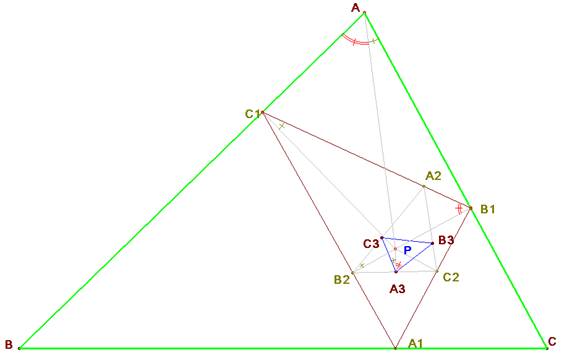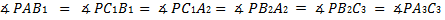 Por lo tanto, los triángulos ABC y A3 B3 C3 son semejantes. Y con esto queda probada la parte A) del problema.