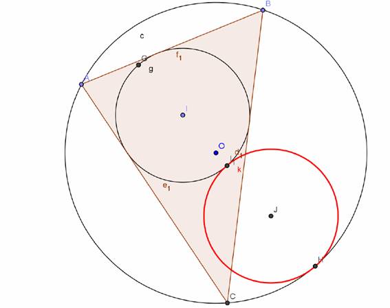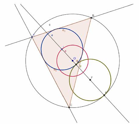 El lugar geométrico de los centros de las circunferencias tangentes a la inscrita y a la circunscita es una elipse de focos el incentro I y circuncentro O y de suma de radios vectores r+ R.