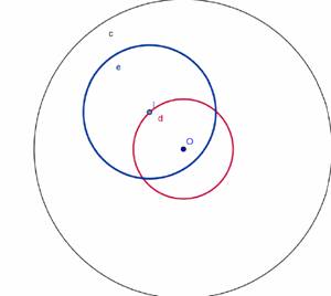 La cirunferencia pedida ha de estar en la recta IO. El radio máximo es (R-r+d)/2.