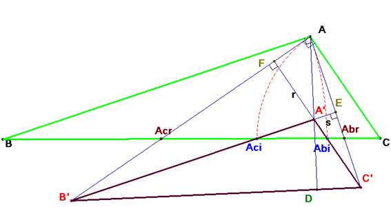 Problema 658. - Sea ABC un triángulo. Los puntos Abi, Aci, Abr,Acr,están sobre la recta BC tales que AB=BAbi , con Abi en el lado opuesto a C, AC=CAci , con Aci en el lado opuesto a B, y los triángulos ABAbr y ACAcr rectángulos en A.