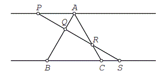 Si PQ=QR=RS, siendo PQRS una transversal de ABC, con P en p, Q en AB, R en AC, y S en s,