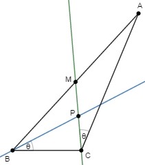Para cada triángulo ABC , se considera el punto P= mc∩l siendo l siendo mc la mediana correspondiente al vértice C y l la recta que pasa por el punto B y tal que ∠(AC, mc)= ∠(BC, l), :